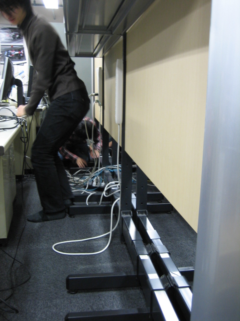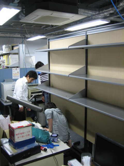 大学院生がみんなで今日から来る新B4のためにスペース作りをしていました。