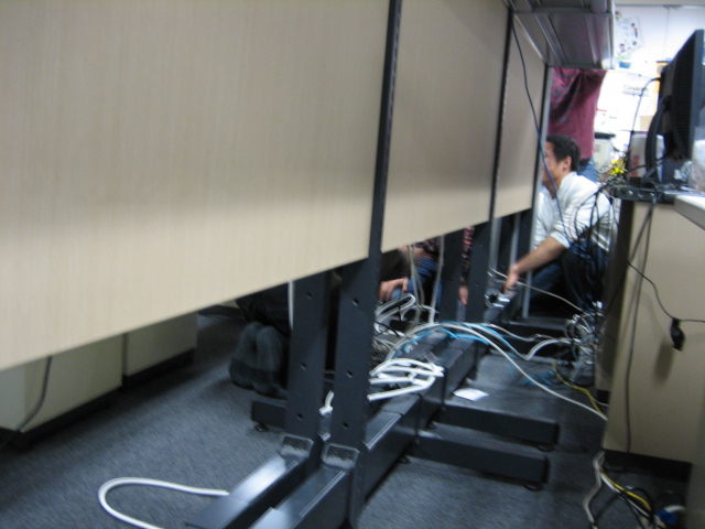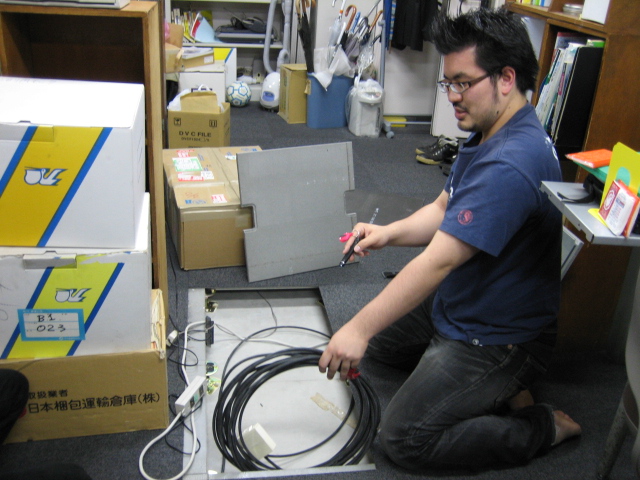 使えるようにOAフロア内から配線を引っ張るという作業もしました。