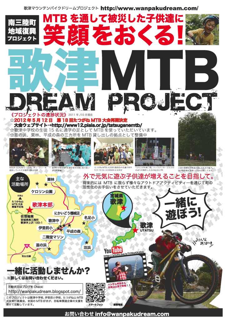 私の仲間が支援しているのは、歌津中学校とその界隈の小学校や未就学児童のためにMTBを100台ほどメーカーから寄付してもらい、それらを使った中学生の通学支援と、小学生以下の子供達に遊び場を(自転車を使ったりもします)提供するというもの。その関連で歌津の自転車を扱う機械屋さんたちの店舗再開のサポートなどもやっています。