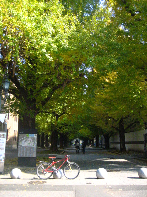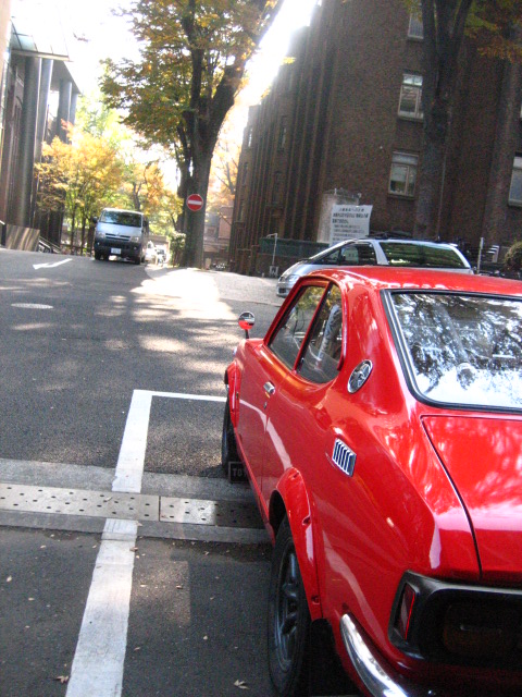 写真は正門前の銀杏並木と、8号館脇に停まっていたスプリンタートレノの後ろ姿。 このスプリンタートレノは今年2月のモンテカルロラリーヒストリックに出ていた車がお色直しをしたもの。来年のモンテカルロにも、このトレノともう一台セリカが参加するそうです。スゴイなー。見に行きたいなー。