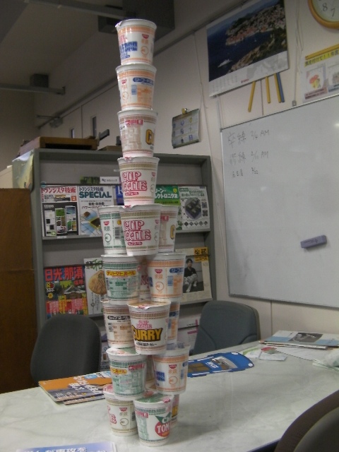 OBのI藤さんが作ってくださった,毎年恒例うまい棒タワー