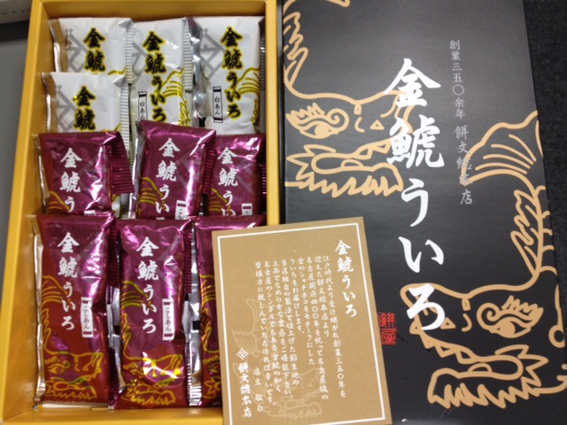 幸運をもたらしてくれる、、らしい?「金鯱ういろ」をお土産にくれました。
