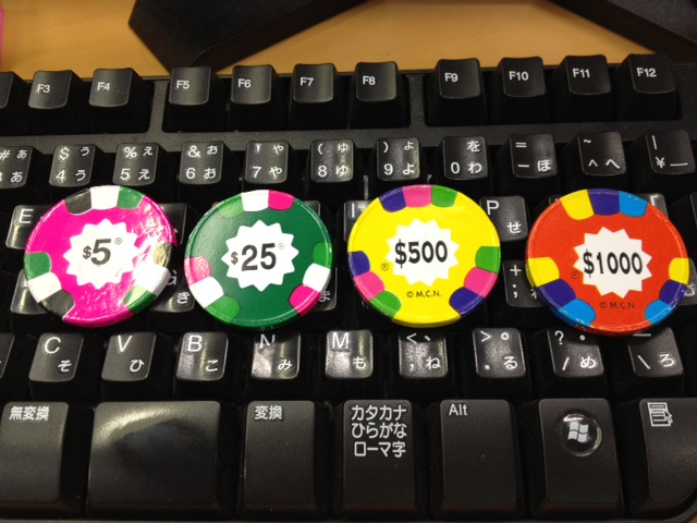 *就職する修士2年の4人がラスベガスでカジノ体験してきたときのおみやげ。1000ドルコインって、、、(笑)もちろん1000ドルコインから頂きました~♪ご馳走様。
