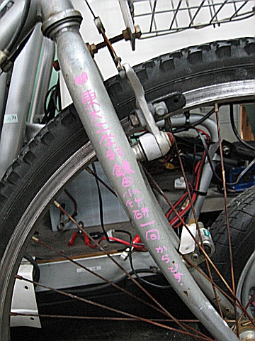 そうそう学部のとき、鎌田小竹研にいたコウイチ君がママチャリを寄付してくれました。