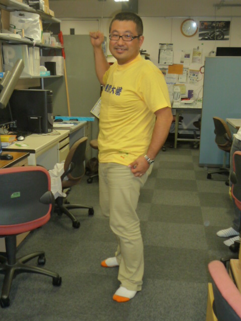 このTシャツ着て、CMUでもフットサルやって、痩せてくださいね。