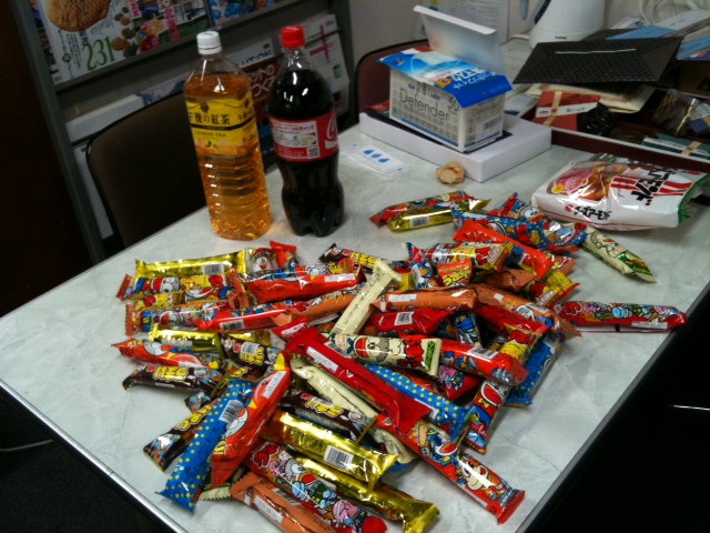 鎌田研の学生部屋のお茶会コーナーにはお菓子がいっぱい!